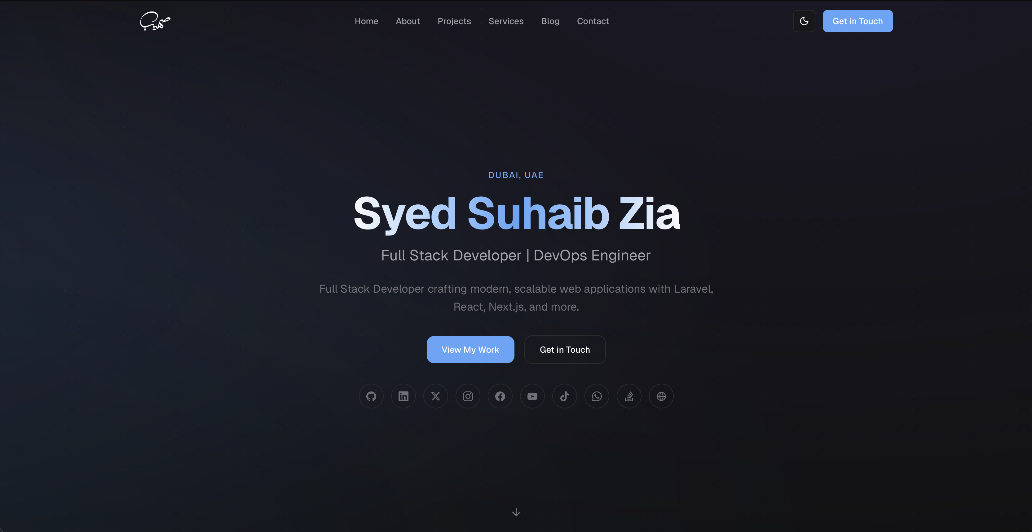 Full-stack portfolio with custom CMS built using Laravel 13 and Next.js 16. Features admin panel, rich text editing, S3 media uploads, GitHub activity graph, dynamic SEO with JSON-LD and sitemap, and Docker-based production deployment with SSL.